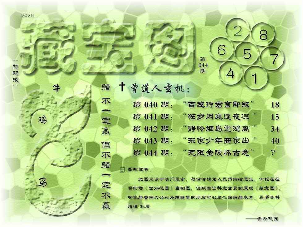 044期正版赌侠诗:【开?00】 今期双数必来报,七出三一有财现(送:零二四头开) 双数至尊有得猜,还敢自称是猛将(送:木火金行开)